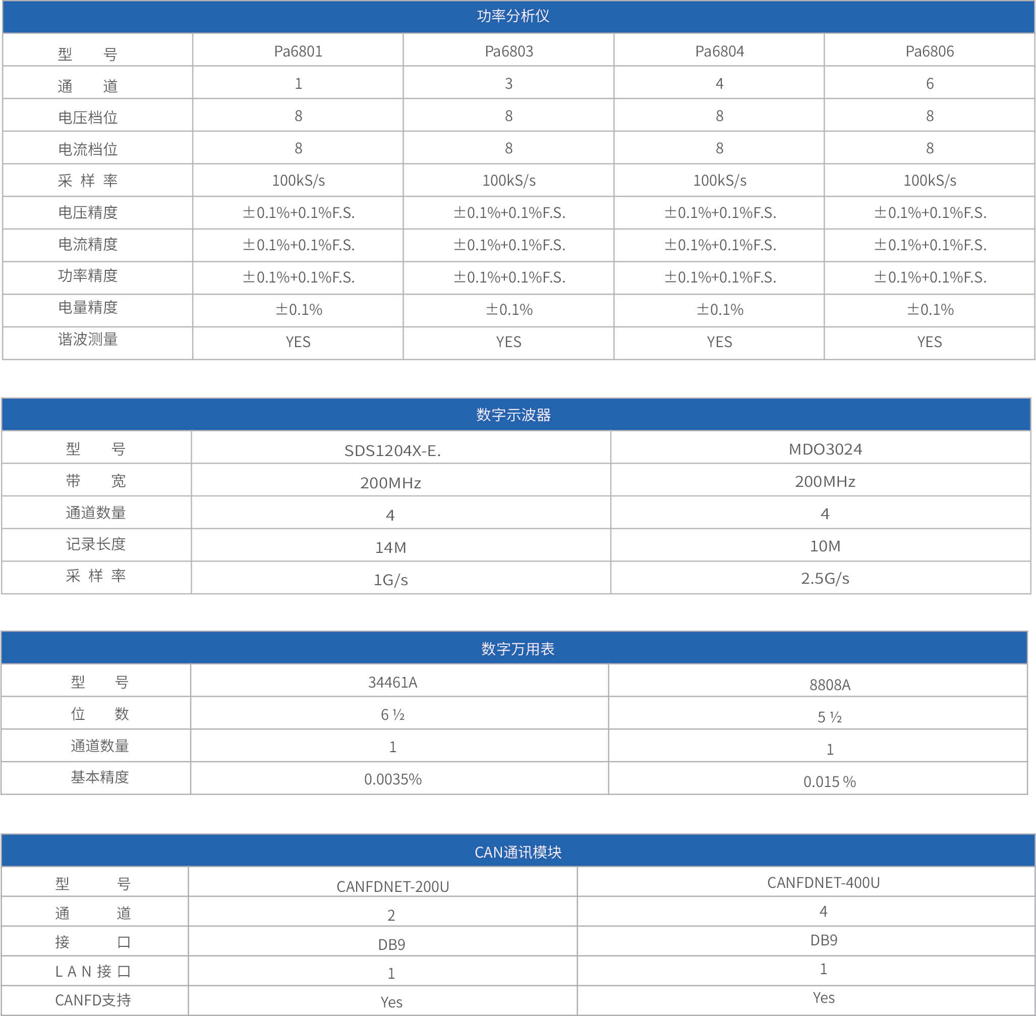 規(guī)格表
