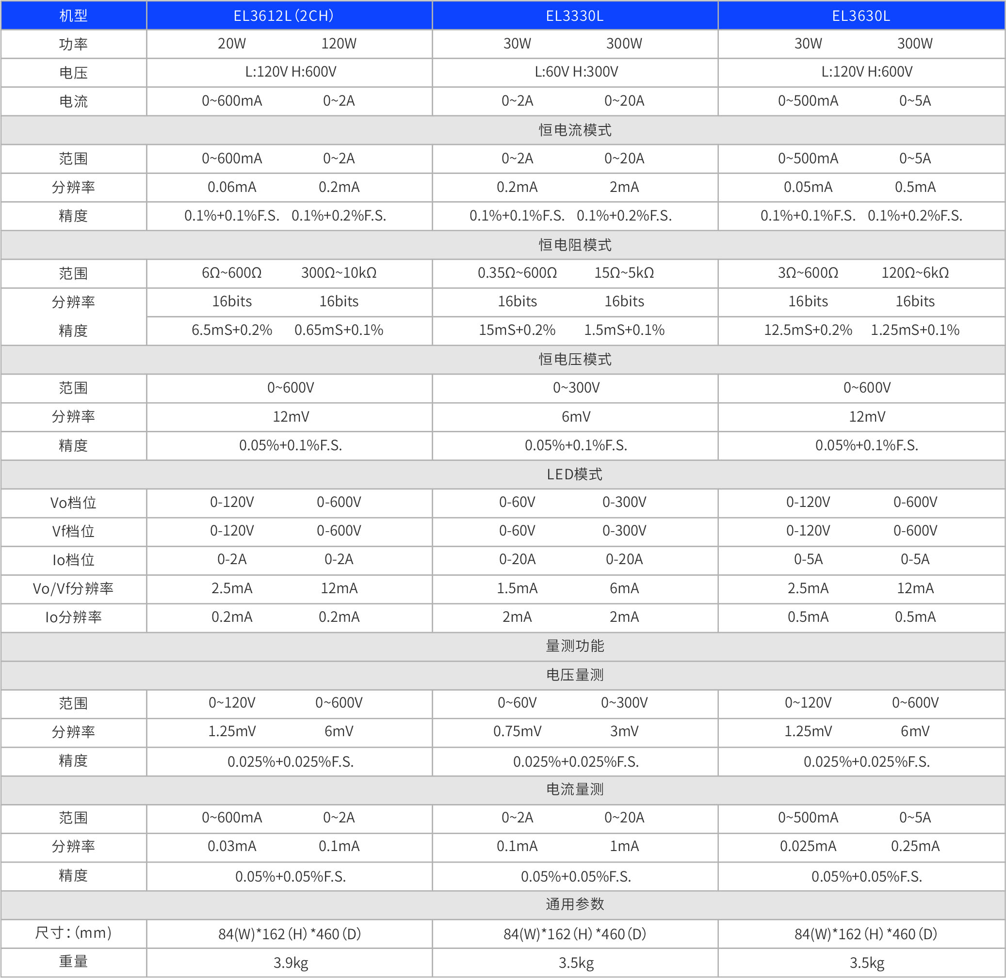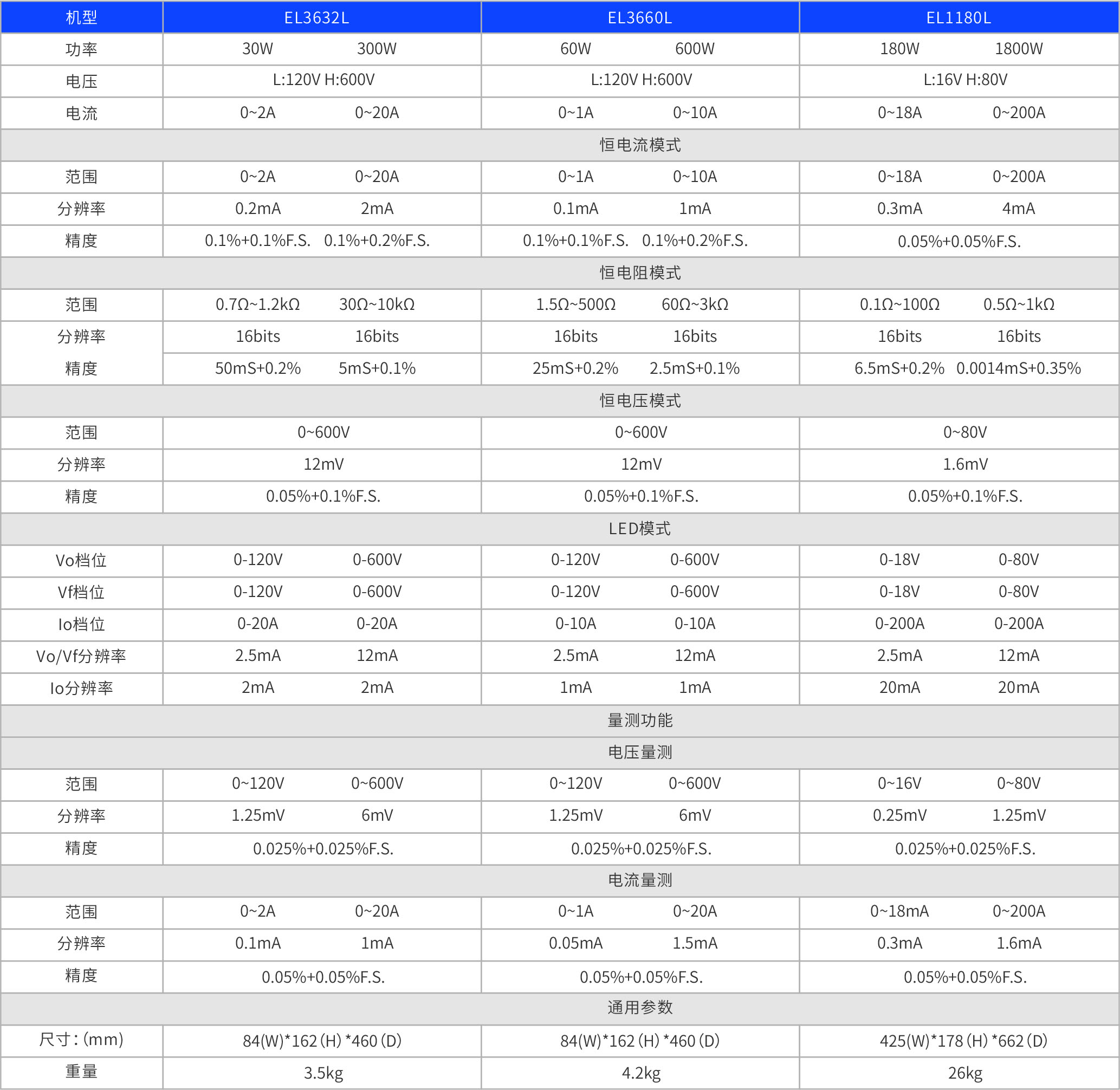 LED直流電子負(fù)載EL3000系列,是專用模擬模擬LED的非線性特性的高精度儀器。內(nèi)置LED內(nèi)阻模擬線路,可仿真LED設(shè)備的漣波電流,快速的負(fù)載響應(yīng)特性可滿足PWM調(diào)光測試要求。