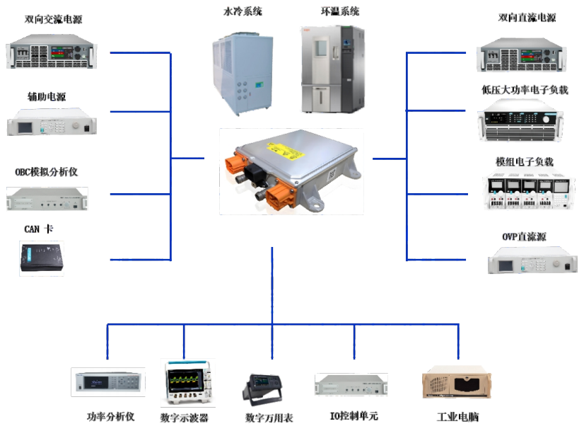 車載充電機(jī)OBC&DC-DC研發(fā)測試系統(tǒng)ATS600,專用于各種動力汽車車載電源、車載充電機(jī)、電機(jī)控制器等產(chǎn)品的電氣特性的實(shí)驗(yàn)室系統(tǒng)。依據(jù)GB/T40432-2011電動汽車用傳導(dǎo)式車載充電機(jī)和GB/T24347-2021電動汽車DC/DC變換器國家標(biāo)準(zhǔn),內(nèi)建實(shí)驗(yàn)室測試項(xiàng)目和極限測試項(xiàng)目,項(xiàng)目覆蓋范圍全,研發(fā)測試速度快??筛鶕?jù)功率選配不同功率等級設(shè)備,支持單向OBC、雙向OBC、OBC+DCDC、DCDC、PUD等多種產(chǎn)品。其模塊化功能設(shè)計(jì)可以滿足生產(chǎn)、研發(fā)、品質(zhì)測試。