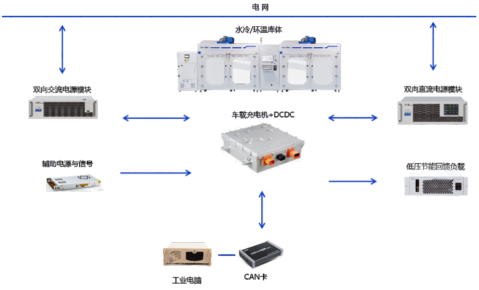 400-800-6892車(chē)載充電機(jī)OBC&DC-DC層板式環(huán)溫老化系統(tǒng)BTS610, 集成超高回饋效率雙向電源模塊,大大減少老化能耗,節(jié)約老化成本。雙向電源模塊源載一體模式支持單向和雙向老化模式,配置獨(dú)立通訊功能模塊,支持一對(duì)一通訊控制,真實(shí)還原實(shí)際工作場(chǎng)景老化。支持環(huán)境溫度、冷媒溫度、冷媒流量、冷媒壓力等參數(shù)客戶(hù)自定義,滿(mǎn)足不同用戶(hù)老化需求,覆蓋范圍廣。老化系統(tǒng)支持?jǐn)?shù)據(jù)一對(duì)一讀取和保存,標(biāo)準(zhǔn)化MES功能對(duì)接模塊,數(shù)據(jù)可溯源。應(yīng)用于OBCDCDC產(chǎn)品研發(fā)耐久、生產(chǎn)老化測(cè)試。
