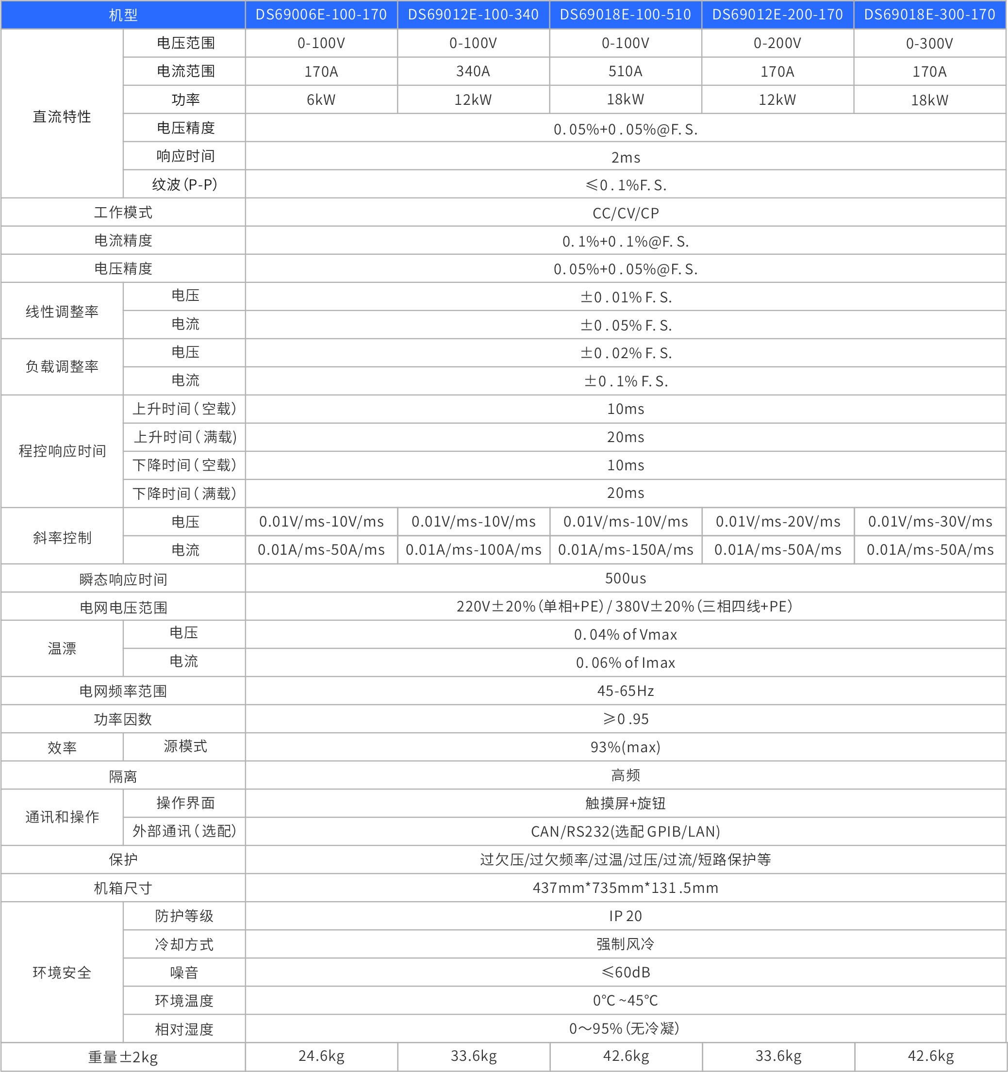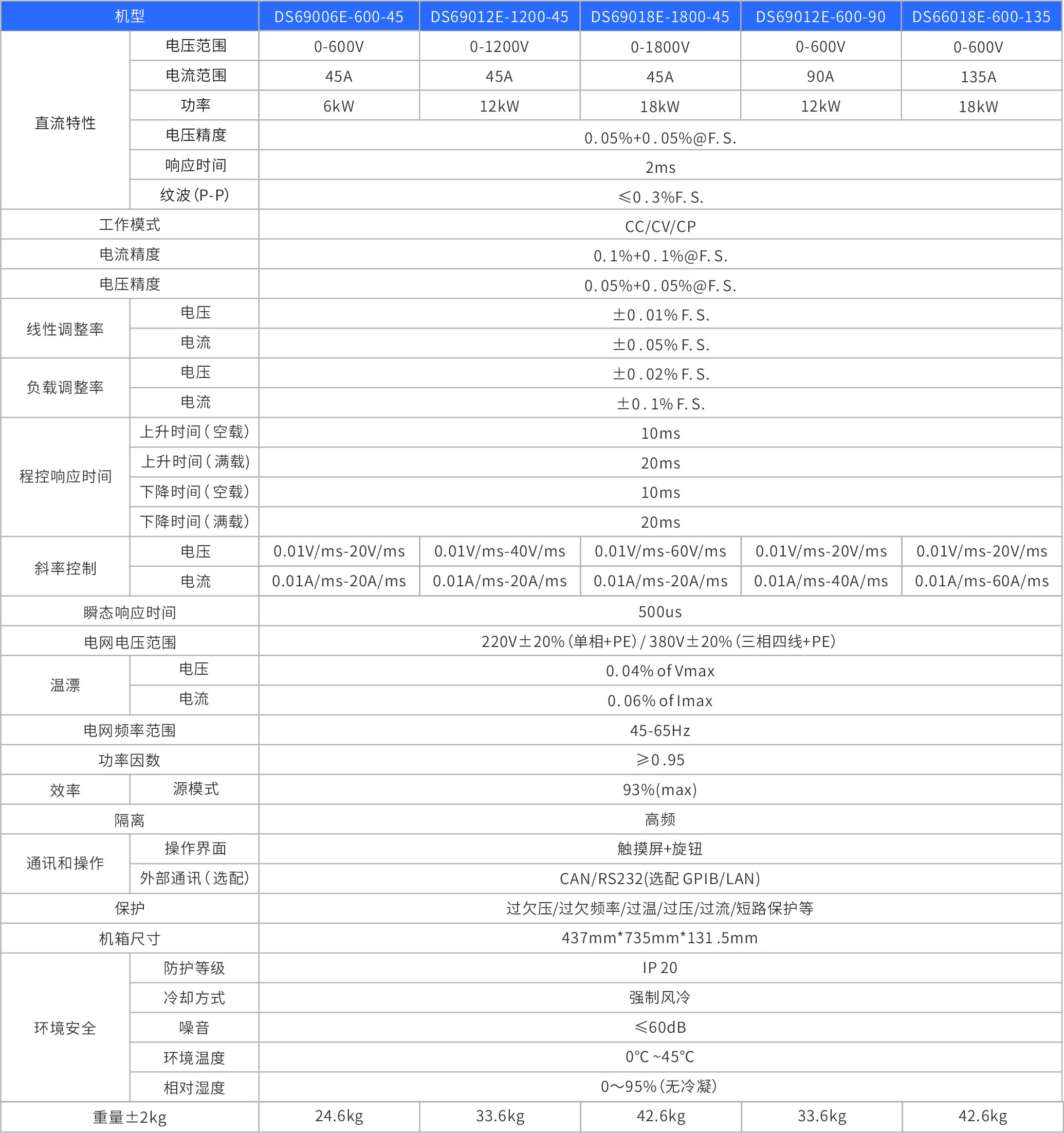DS69000系列程控直流電源是一款具備輸出高精度電壓、電流的電源產(chǎn)品,具備高精度測量功能。該系列可最大限度滿足高壓小電流、低壓大電流等不同產(chǎn)品的測試需求。