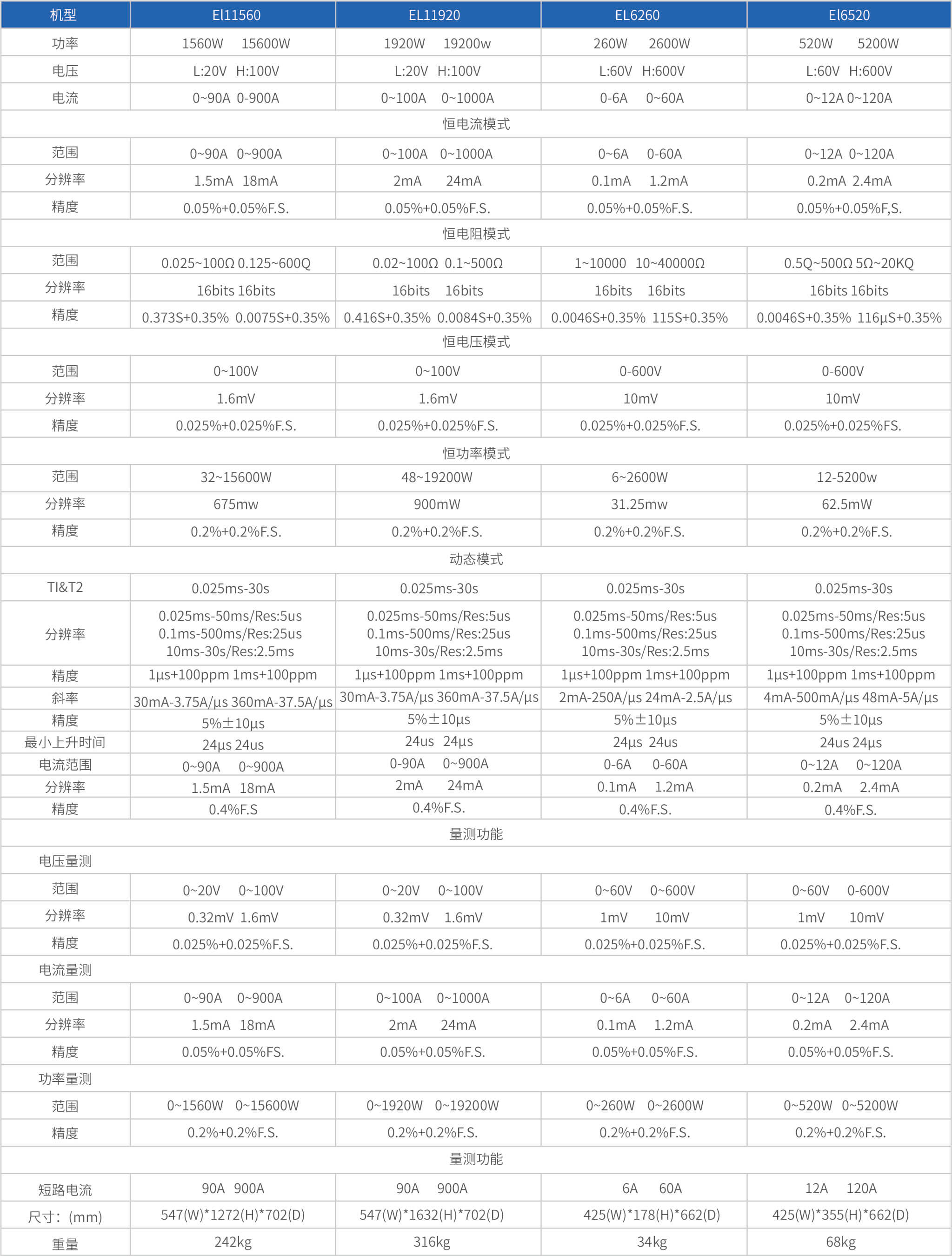 大功率系列電子負(fù)載是專用模擬低壓高功率產(chǎn)品負(fù)載變化的高精度儀器。該系列可模擬變化頻率達(dá)20kHz的高速動態(tài)負(fù)載變化。本系列可應(yīng)用于大功率開關(guān)電源、電源裝置設(shè)備、動力電池組和電子元器件測試的負(fù)載模擬。