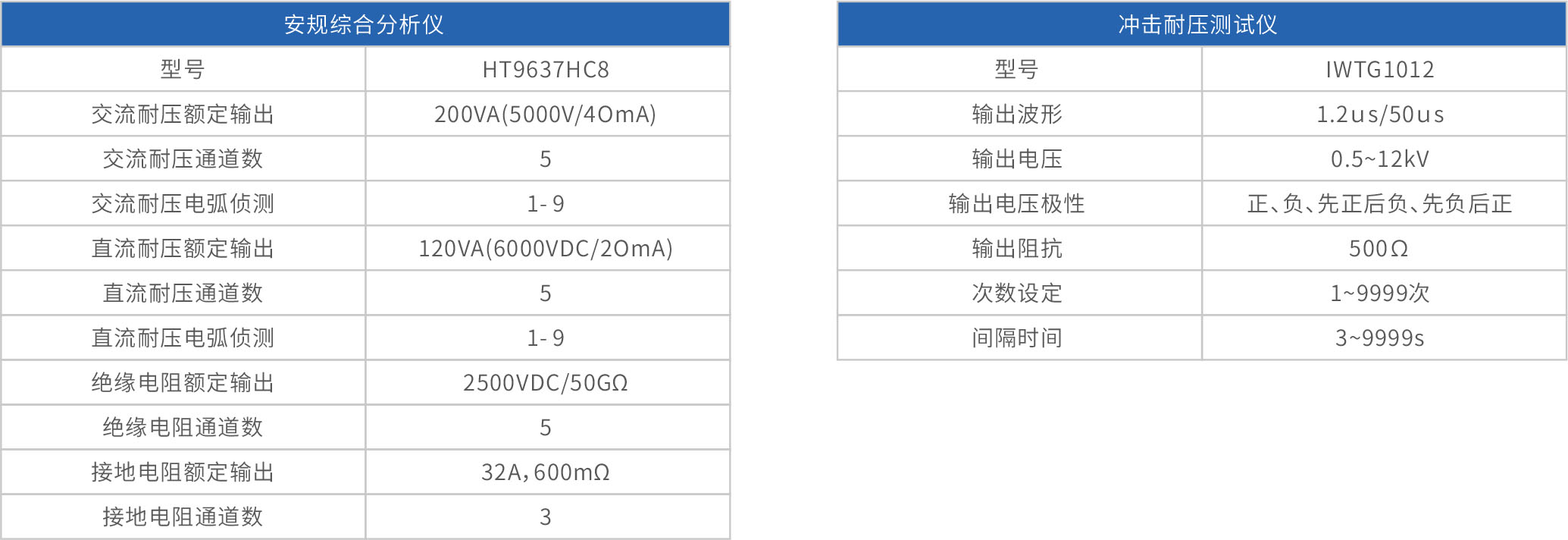 規(guī)格表