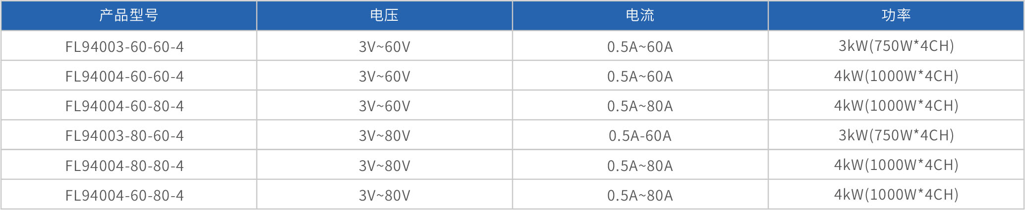 FL94系列直流電子負(fù)載,是一款回饋式的功能模塊,它具有4個完全隔離的DC輸入通道,單臺機就能實現(xiàn)高達(dá)320A放電,能源回收效率最高可達(dá)92%。