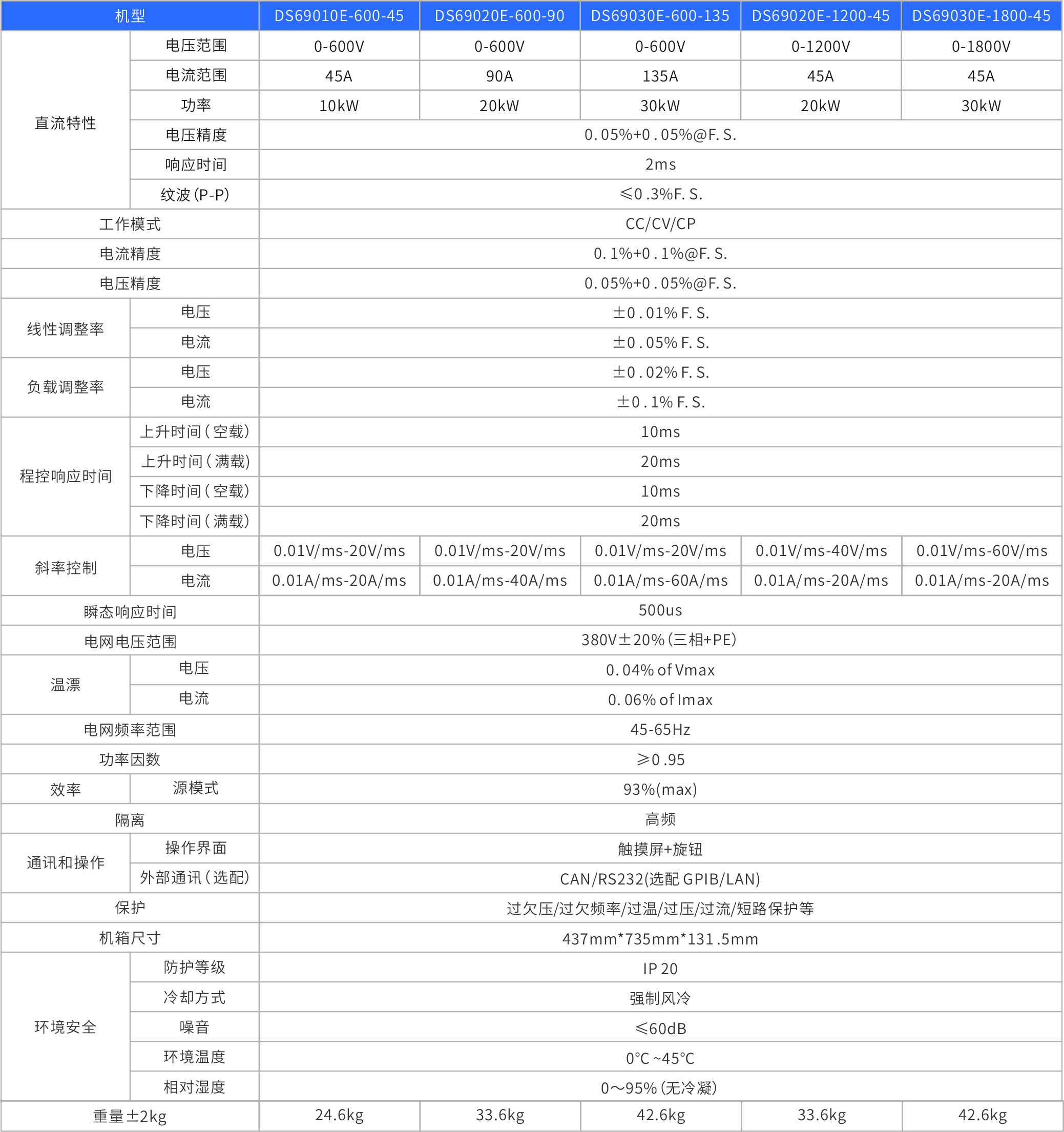 DS69000系列程控直流電源是一款具備輸出高精度電壓、電流的電源產(chǎn)品,具備高精度測量功能。該系列可最大限度滿足高壓小電流、低壓大電流等不同產(chǎn)品的測試需求。
