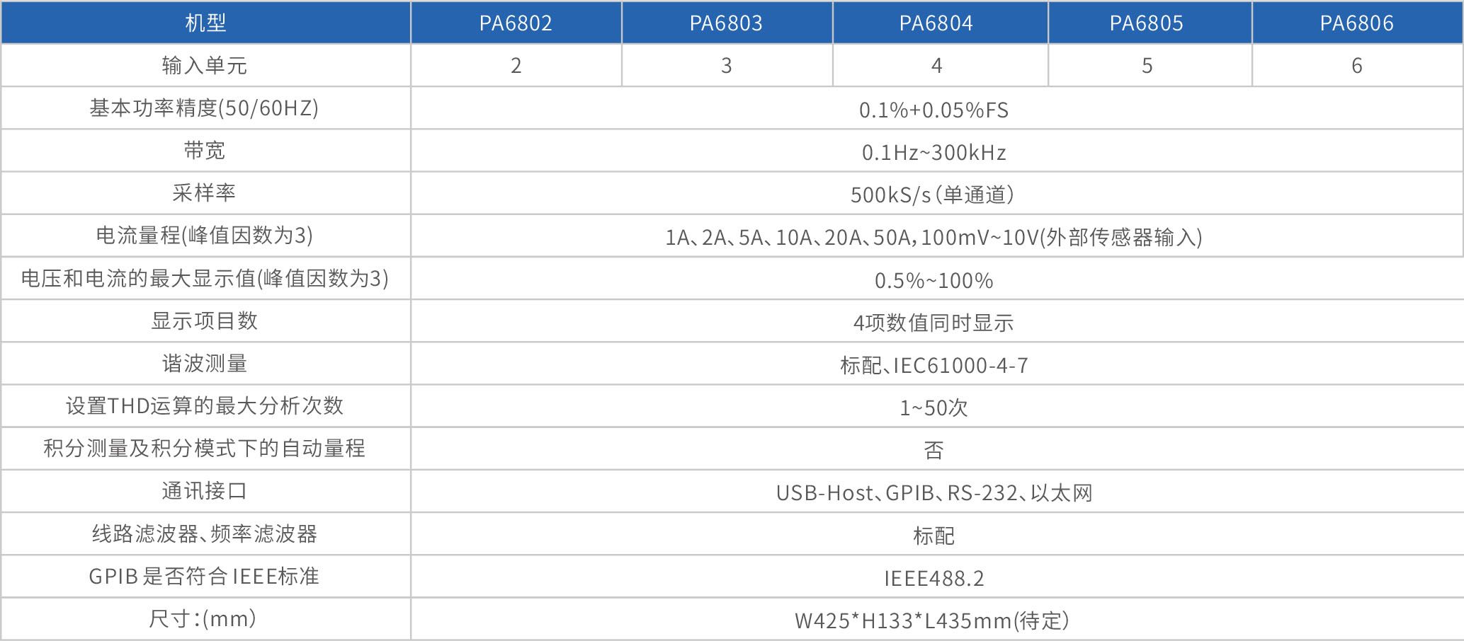 根據(jù)通道數(shù)的不同,PA6800系列高度功率計(jì)具有0.1%的功率測(cè)量精度,可滿足用戶從5mA小電流到50A大電流的測(cè)量需求;并采用DSP+FPGA雙核處理架構(gòu),快速、精確地計(jì)算信號(hào)的諧波參數(shù),同時(shí)具備GPIB、USB、以太網(wǎng)等接口滿足用戶不同的測(cè)試通信需求。