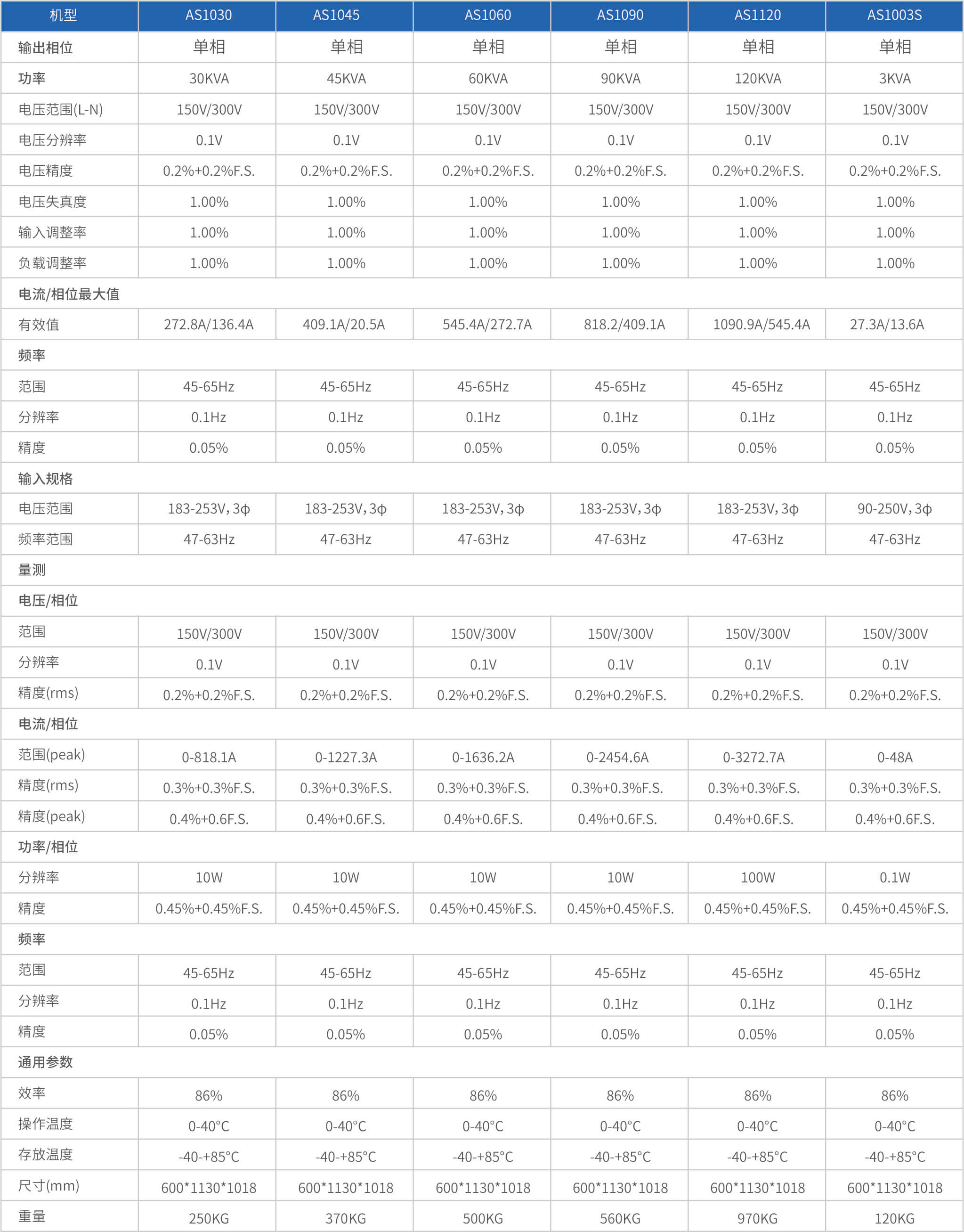 程控交流電源-AS1000/AS1000S系列,是一款高性價比 、高穩(wěn)定性的交流變頻電源,采用數(shù)字化技術(shù)、控制精確可以輸出非常純凈、諧波成分小的正弦交流波形。本款電源的電壓輸出范圍0-300V,頻率范圍寬,適合作為工頻輸入的電子產(chǎn)品測試輸入源。全面的保護機制讓用戶使用起來更加安全??蛇x配RS232或RS485通訊接口,讓本產(chǎn)品可整合用于各種測試系統(tǒng)。