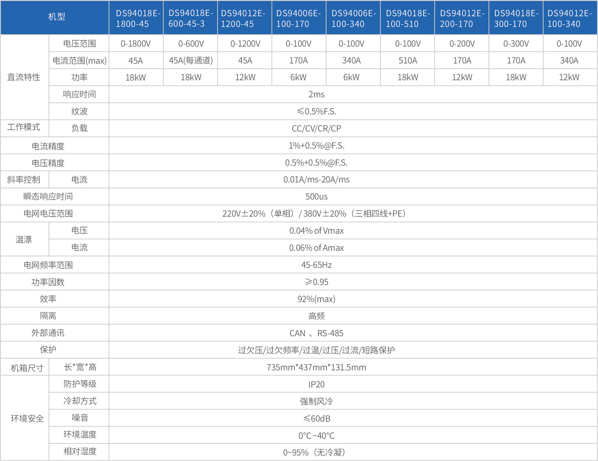 DS94000E系列是一款雙向直流電源,集成雙重核心功能:既可作為標(biāo)準(zhǔn)直流電源提供穩(wěn)定輸出,亦能精確模擬多種負(fù)載特性,并將電能高效回饋至電網(wǎng)。該產(chǎn)品顯著降低了功率轉(zhuǎn)換過程中的能量損耗與用電成本,憑借其突出的節(jié)能性能與高度靈活的適配能力,可廣泛適用于新能源儲能系統(tǒng)的各項測試場景。